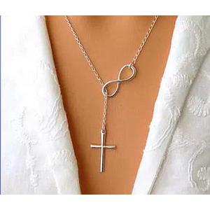 Collar de infinito de cruz plateado