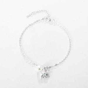 Tobillera plateada de estrella de mar con perla