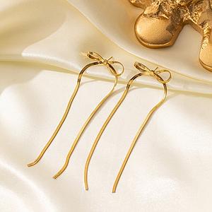 Aretes largos de moña dorada
