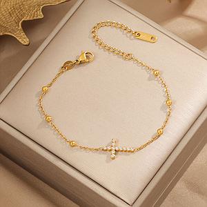 Pulsera de cruz con perlitas doradas