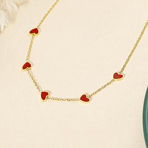 Collar de corazones rojos baño de oro