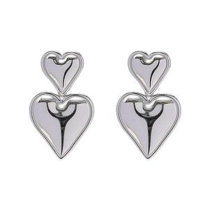 Aretes de doble corazón plateado